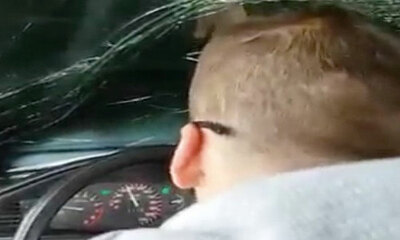 Alors qu'il commence a accélérer fortement pour rouler à toute vitesse sur une route de campagne, le capot de sa voiture se lève. Forcément, le conducteur est surpris et se retrouve complètement aveugle et doit utiliser ...