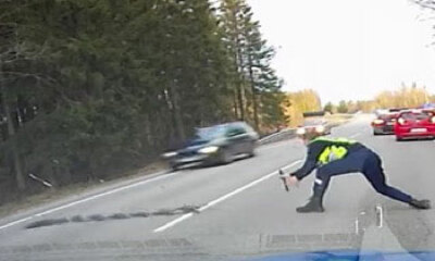 Le 1er mai 2017 dans le Comté de Jõgeva en Estonie, la police a tenté d’arrêter un automobiliste qui roulait ivre au volant d'une voiture Opel. Pour cela, ils ont utilisé une herse (Stop Stick) que l’on voit être lancée ...