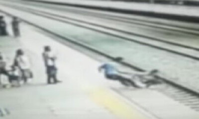 En Chine, une étudiante a voulu se suicider en se jetant sous un train. Sur ces images d’une vidéo surveillance, on peut voir la jeune fille sur le quai d’une gare prendre son élan pour se précipiter sous un train qui re...