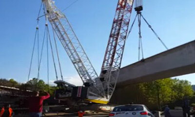 Les images de la chute d'une grue pendant la construction d'un pont ferroviaire près de Varèse, en Italie. Alors que l'appareil de levage était en train de placer une section du pont, celui-ci n’a pas supporté le poids e...