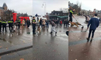 A Amsterdam aux Pays-bas, un homme a donné du fil à retordre à quatre policiers pour son arrestation. On peut le voir, se faire asperger le visage avec un spray pour ensuite tenter de mordre le chien. C'est ensuite qu'il...