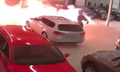 En Finlande, la caméra de sécurité à filmé un individu qui a pénétré par effraction dans un garage pour y mettre le feu. On peut voir sur les images, l’homme asperger d’essence plusieurs gros véhicules pour ensuite les i...