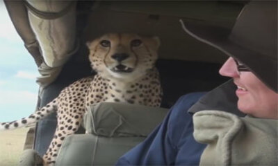 En Afrique du sud durant un safari, un des visiteurs a eu la chance et la trouille de sa vie de pouvoir approcher un guépard. L'animal tout proche du véhicule a grimpé à l'intérieur pour visiter l'habitacle pour se retro...