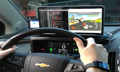 Un américain a décidé de brancher un émulateur (N64 emulator) connecté à son volant pour jouer à Mario Kart 64. Avec le volant, il peut ainsi diriger le personnage, les phares permettent de freiner et les essuies-glaces ...