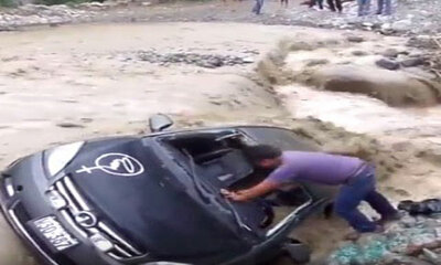 Cet habitant de la ville de Cañete a tenté de traverser la rivière du même nom, alors que celle-ci est en proie à une impressionnante crue. À peine engagé, le véhicule va se faire emporter par la rivière et se fracasser ...