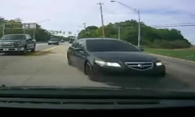 Pendant une course poursuite avec la police, la voiture en fuite a failli faire une collision frontale avec un automobiliste. Aux États-Unis, un homme au volant de sa voiture a vu sa vie défiler devant lui alors qu’un fu...