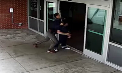 Aux États-Unis, un homme menaçait un poste de police avec sa batte et un policier est intervenu en le plaquant au sol tel un rugbyman. Sur ces images filmées à partir d’une caméra de surveillance on peut voir l’homme fra...