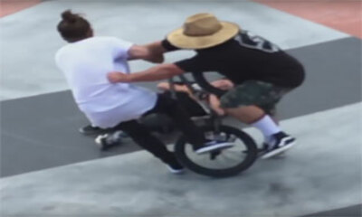 Dans un skate-park aux Etats-Unis, un jeune en BMX vient par accident heurter un jeune homme en skate sous les yeux de son père. Le daron pète alors un câble et vient se jeter sur le BMX'r pour lui donner un coup de poin...