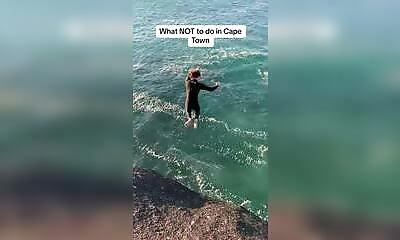 Un homme aimant le risque a plongé dans la mer à Capetown (Afrique du sud), malgré les violents courants. Va-t-il réussir à rejoindre la rive?? Réponse en vidéo?!