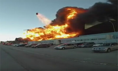 Dans une usine en Amérique du Sud, un incendie s'est déclaré provoquant des gros dégâts et surtout faisant décoller un container à plus de 20 mètres dans les airs. Sur cette vidéo tournée par un cameraman amateur, on peu...