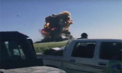 Des images provenant d'une caméra d'un journaliste algérien près de Tel Afar en Irak où un véhicule blindé de Daesh se fait exploser par les forces militaires irakiennes. L'explosion est tellement forte que l'onde de cho...
