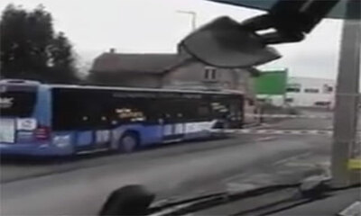 En France à Compiègne (Oise) et plus et plus exactement sur la route de Choisy, un chauffeur de camion allemand a filmé plusieurs voitures et un bus en train de franchir un passage à niveau barrières baissées et feux cli...