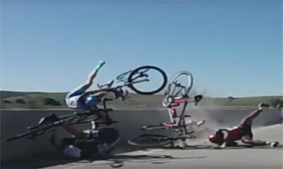 Dans le comté de Santa Barbara, un cycliste a eu un joli réflexe qui lui a sauvé sa vie pendant une course cycliste organisée en Californie. Durant le sprint final qui se déroulait sur un pont, un coureur a fait une chut...