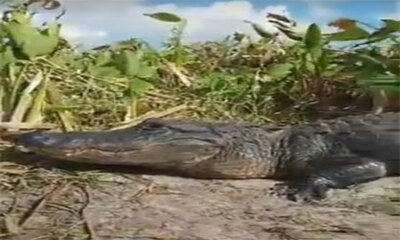 En vacances en Floride, un couple qui observait un alligator d'un peu trop prêt, leur a réservé une petite surprise. Dans une embarcation accompagnée d'un guide, le couple a repéré un énorme spécimen et le mari a alors s...