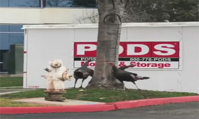 Non, il ne s'agit pas d'une bagarre entre filles filmée dans un magasin de soldes mais de 3 dindes qui se courent sur un parking en Californie. Un homme a filmé au volant de sa voiture trois dindes qui se couraient après...