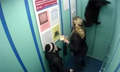 A Moscou, un chien en laisse son chien qui rentre d'une promenade cours en direction d'un ascenseur en même temps qu'une mère et son fils. Malheureusement, les portes se referment avec la laisse à l'extérieur et l'animal...