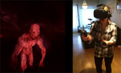 Totale immersion ? En tout cas pour Renate qui testait pour la première fois un casque de réalité virtuelle en jouant au jeu de tir The Brookhaven Experiment. Le but du jeu, repousser les hordes de zombies en les tuant a...