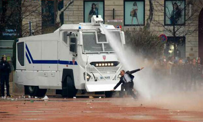 La magazine Obs vient de publier une vidéo tournée ce jeudi place Bellecour, à Lyon, où les forces de l'ordre ont usé du canon à eau pour disperser des casseurs. Un homme âgé, qui ne présentait pourtant aucune menace, en...