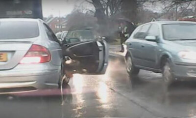 Alors qu'il circule au volant d'une Mercedes en Angleterre, ce conducteur se retrouve bloqué par un bus qui est tombé en panne sur le bord de la route. C'est alors qu'il réagit rapidement en sortant de sa voiture pour al...