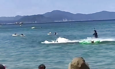 "Quand Flipper perd les pédales" : C'est sur une plage japonaise habituellement paisible de Mihama qu'un dauphin a fait des vagues... au sens littéral ! Pas content, le mammifère marin a fait valser un nageur sexagénaire...