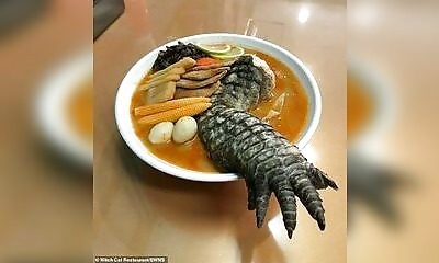 On a déjà vu toutes sortes de ramens, mais jamais rien d'aussi extravagant : une patte de crocodile flottant dans le bouillon. C'est la dernière innovation culinaire du restaurant Witch Cat à Yunlin, Taïwan. Baptisé "God...