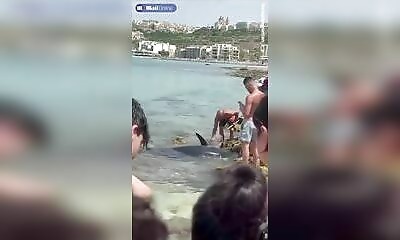 L'ambiance estivale à Mellieha Bay, sur la côte nord de Malte, a subitement viré au cauchemar lorsque des enfants en vacances ont aperçu une nageoire dorsale effrayante émergeant des eaux peu profondes. Les cris de "Requ...