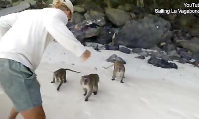 Riley Whitelum est un influenceur australien qui a quitté son travail il y a neuf ans pour voyager avec sa compagne Elayna Carausu à travers le monde en bateau, a été attaqué par une bande de singes sur une plage de l'îl...