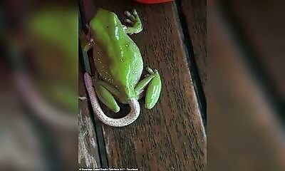 Une photo incroyable d'une grenouille verte en train d'accoucher d'un bébé serpent a été partagée sur la page Facebook de Sunshine Coast Snake Catchers. L'image montre un serpent brun de l'Est sortant du postérieur de la...