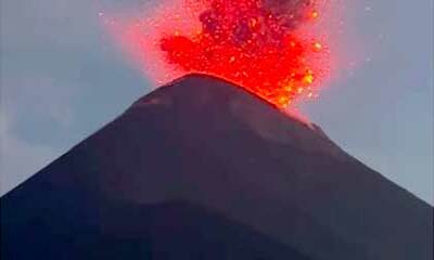 Dans la soirée du vendredi 26 août 2022 à Antigua, au Guatemala, un groupe de touristes et leurs guides ont grimpé le Volcan de Fuego jusqu'à approximativement 200 mètres du sommet lorsqu'une éruption a projeté un puissa...