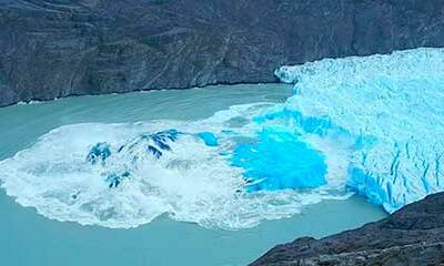 Dans le parc national Los Glaciares, en Argentine, la vidéo extraordinaire d'un morceau du glacier Perito Moreno qui se casse et bascule à la surface de l'eau, révélant peu à peu la partie immergée du glacier. A savoir, ...