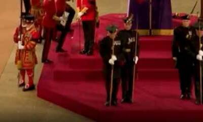 Actuellement, le corps d'Elizabeth II est couvert du drapeau royal et de la couronne impérial pour être exposé dans Westminster Hall à Londres. Pour veiller le corps, des gardes entourent le cercueil en uniforme et sont ...