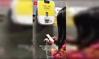 En Chine, une vidéo montre un système étonnant dans des toilettes publiques. Pour obtenir du papier toilette, les visiteurs doivent d’abord regarder une publicité sur leur téléphone. Une femme attend patiemment qu’une pu...