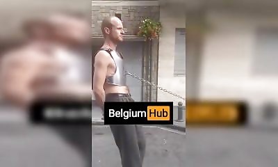 Un homme court derrière une voiture en pleine rue, attaché par une chaîne reliée à un harnais métallique. La scène se passe en Belgique et il semble que ce soit sa femme qui conduit. Rien n’indique qu’il subit la situati...