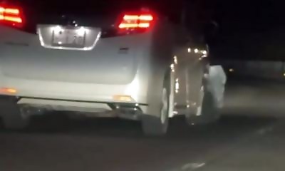 Un véhicule Alphard est aperçu à Fukushima, roulant alors que sa roue avant droite est gravement détruite, éparpillant des fragments sur la route.