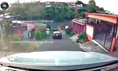 Scène flippante capturée par dashcam à Pueblo Nuevo d'Alajuela, Costa Rica, début février 2026. Deux mecs armés sortent d'un véhicule noir et tentent un bajonazo (braquage violent) sur un automobiliste vers 6h30 du mat. ...