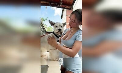 Voici @katygomita en train de s'occuper d'un chien. Je la regarderais faire toute la journée.