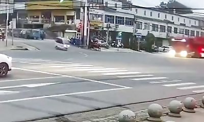 En Anhui, dans l’est de la Chine, une vidéo montre un accident impressionnant : La rencontre entre un tricycle et un camion va donner quelque chose d'assez improbable.