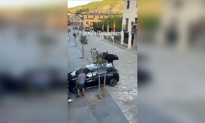 Un taureau en liberté a provoqué une scène étonnante dans le village de Tendilla, en Castille-La Manche. Un Peugeot 208 garé s’est retrouvé sérieusement endommage? après la charge de l’animal. La vidéo, tournée en Espagn...