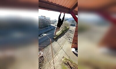 A Toronto, une femme montre ses talents en gymnastiques et ses reflexes impressionnants.