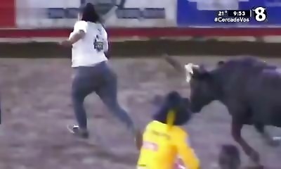 Une femme tente de provoquer un taureau pendant une de ces évènements organisées où cette tradition est encore bien vivante. Le taureau ne se laisse pas faire : il la charge, la soulève et lui inflige un sacré wedgie (so...