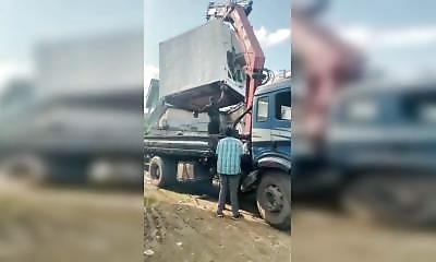 Un homme en Afrique tente de charger un générateur sur un camion à l’aide d’une grue montée à l’arrière. Pas de casque, pas de chaussures de sécurité (ok, ce n'est peut-être pas ça qui l'aurait sauvé), juste un short, de...