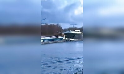 Sur le canal Amsterdam-Rhin, aux Pays-Bas, un cargo est venu percuter un bateau qui poussait une barge devant lui. L’impact est violent, et le cargo semble ne pas ralentir avant la collision. Le bateau percuté se retrouv...