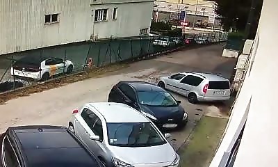 Le 27 novembre 2024, dans un parking d'entreprise, un conducteur a oublié d'activer son frein à main.