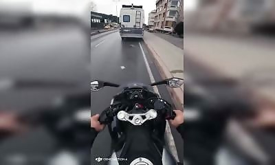Un motard amateur à Istanbul, caméra sur le casque, accélère en pleine ville, mais la route semble mouillée, et un véhicule a décidé de s'arrêter juste devant lui … Heureusement, il s’en tire sans trop de dégâts....