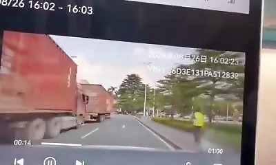 En Chine, un automobiliste s'arrête parce qu'il voit des piétons arriver à sa droite, mais ne s'attend pas à ce qui va arriver sur sa gauche. Et pour cause.