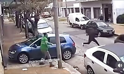 En Argentine, des voleurs ont tenté de dérober un Golf alors que son propriétaire était en train de rentrer chez lui, mais c'était sans compter la solidarité entre voisins. Le voisin qui recule est particulièrement excep...