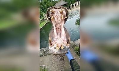 Inspectez la bouche d'un hippopotame sans prendre aucun risque, contrairement à celui qui tourne cette vidéo …