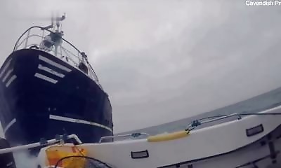Jake Davison, pêcheur amateur de 27 ans, vécut une effrayante expérience en mer sur le détroit de la Manche lorsqu'un chalutier de 1 000 tonnes percuta son petit bateau de pêche. La scène fut capturée par une caméra inst...