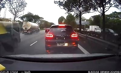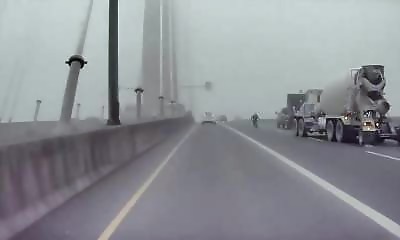 Dans la brume dense près du Port Mann Bridge à Surrey au Canada, un accident a failli se produire. Un homme, dont le véhicule était endommagé, s'est arrêté dans la voie de droite du pont. Un camion, ne le voyant pas à ca...