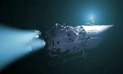Dans une animation réalisée en 3d, on assiste à la destruction du sous-marin TITAN. Cette simulation dépeint l'instant précis où le sous-marin (et un corps humain pour l'exemple) sont écrasés sous l'effet de la pression....